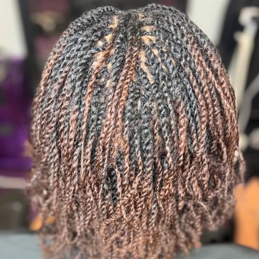 People choose this service to experience flexibility, fullness, and styling freedom with their locs. Micro Twists can enhance the appearance of your natural hair, offering a carefree lifestyle. Maintaining your locs involves visiting your loctician every 4-6 weeks for retightening of new growth.